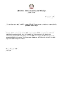 Avvisi e Notizie 14 Marzo 2020 EMERGENZA CORONAVIRUS – Prorogati termini versamenti fiscali 16 marzo, nuove scadenze e sospensioni in prossimo decreto legge Posted By: admin 1108 Visualizzazioni
