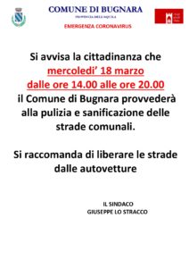 Avvisi e Notizie 16 Marzo 202016 Marzo 2020 EMERGENZA CORONAVIRUS – PULIZIA E SANIFICAZIONE STRADE COMUNALI MERCOLEDI’ 18 MARZO Posted By: admin 1119 Visualizzazioni