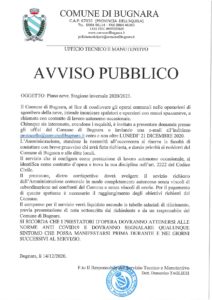 Avvisi e Notizie 15 Dicembre 2020 PIANO NEVE – STAGIONE INVERNALE 2020/2021 – AVVISO PUBBLICO Posted By: admin 973 Visualizzazioni