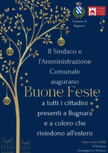 Avvisi e Notizie 25 Dicembre 2021 GLI AUGURI DI BUONE FESTE DELL’AMMINISTRAZIONE COMUNALE DI BUGNARA Posted By: admin 1249 Visualizzazioni