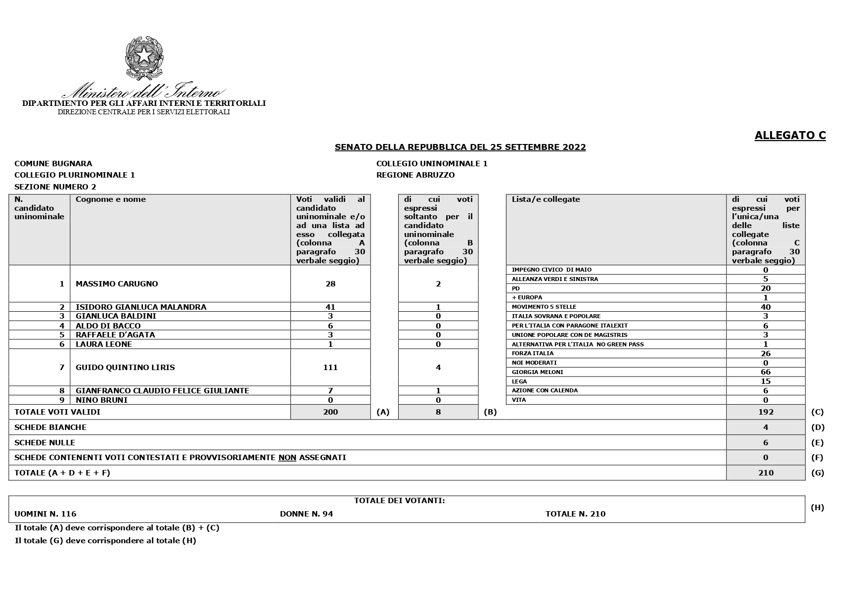 Avvisi e Notizie 26 Settembre 2022 RISULTATI ELEZIONI POLITICHE DEL 25 SETTEMBRE 2022 Posted By: admin 955 Visualizzazioni SEZIONE N. 1 SEZIONE N.2